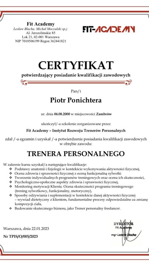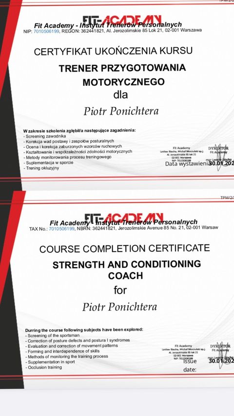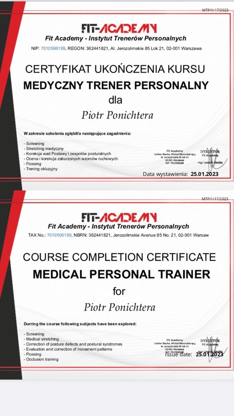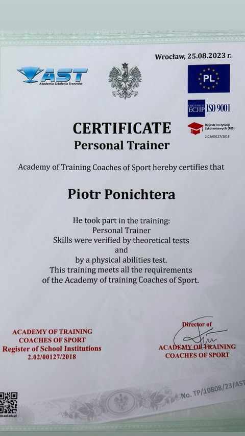 Nieustannie zdobywam aktualną wiedzę i stosuję ją w mojej praktyce trenerskiej. Bycie trenerem to odpowiedzialność dlatego pracuję nad sobą żeby później pomagać Wam 🙂